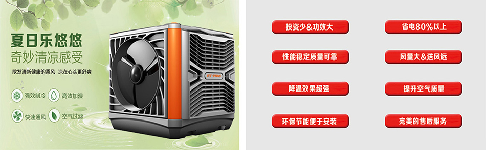 水冷空调,又称蒸发冷风机,是一种集降温、换气、防尘、除味于一身的蒸发式降温换气机组。水冷空调除了可以让企业车间、公共场所、商业娱乐场合带来新鲜空气和降低温度之外,还有一个重要特点----节能、环保!它是一款全新无压缩机、无冷媒、无铜管的环保产品,主要部件核心-----蒸发式湿帘(多层波纹纤维叠合物)及1.1KW的主电机/是传统中央空调耗电1/8,能为各行业更实在的省电。