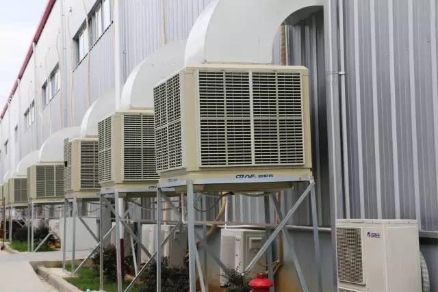 这批环保空调共20台,当室外温度在35℃以上,空气湿度为65%-80%以上时,环??盏骶突峤兴头?,出风口温度比室外温度低4-10℃,散射降温面积1平方米左右,经环??盏鞴私滴潞蟮那逍铝狗缃丛床欢系厮腿氤导?,同时将车间内的高温闷热的热空气从门窗挤压到室外。