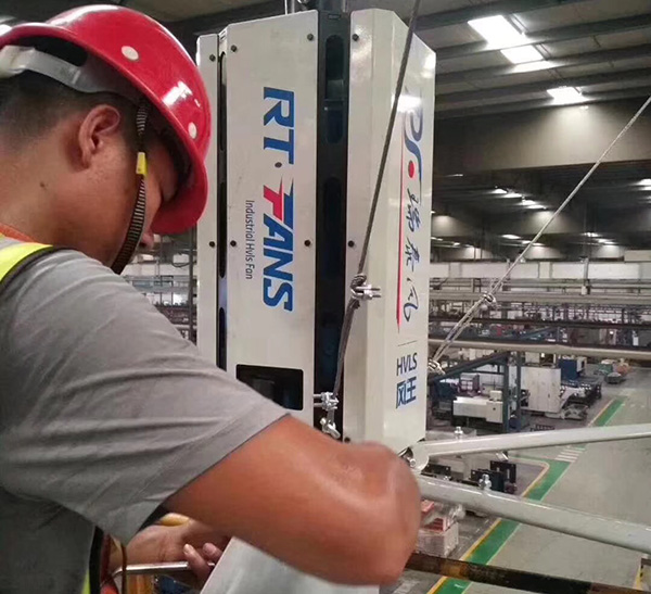 只要厂房高度在5.5米以上,无论厂房结构是钢结构、混凝土结构、球形网架结构或复杂结构皆可安装工业大风扇;安装场所也无特别要求,比如厂房、仓库、商业中心、火车站、汽车站、展馆、畜牧场皆可安装;厂房内部有无行车皆可安装;220V、380V皆可安装瑞泰风大型工业风扇。